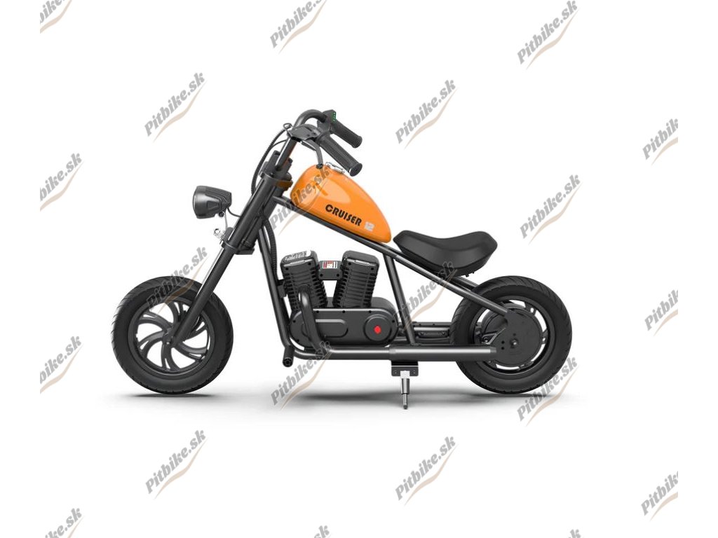 Hyper Gogo Cruiser 12 prináša štýlový chopper dizajn a spoľahlivý výkon určený pre deti od 6 do 12 rokov. Vďaka motoru 24 V/160 W a trom rýchlostným režimom (8 / 12 / 16 km/h) poskytuje bezpečnú, no stále vzrušujúcu jazdu. Dojazd až 10 km na jedno nabitie a jednoduché 4-hodinové nabíjanie zaručujú dlhé hodiny zábavy. Oceľový rám s vysokým obsahom uhlíka a 12″ nafukovacie pneumatiky zabezpečujú stabilitu aj na mierne nerovnom teréne. LED predné svetlo zvyšuje viditeľnosť pri súmraku. Tento základný model neobsahuje Bluetooth reproduktor ani aplikáciu na nastavenie parametrov jazdy, vďaka čomu je maximálne jednoduchý a spoľahlivý.