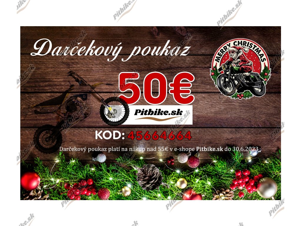 Darčekový poukaz možno uplatniť na nákup na e-shope pitbike.sk